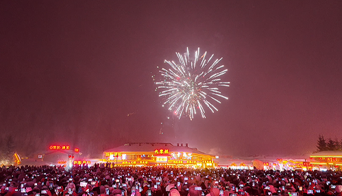 20:32,煙花秀與激光秀準時登場!璀璨煙花劃破夜空,絢麗激光點亮雪鄉林海,歡呼聲、驚嘆聲此起彼伏,將跨年氛圍推向頂峰。